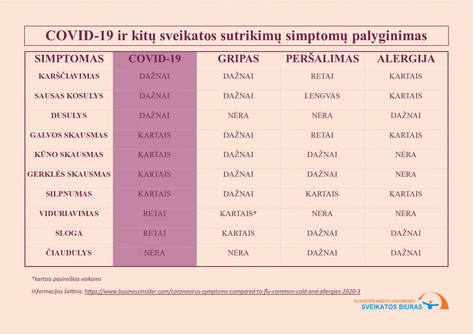 COVID-19 SIMPTOMŲ IR GRIPO PALYGINIMAS